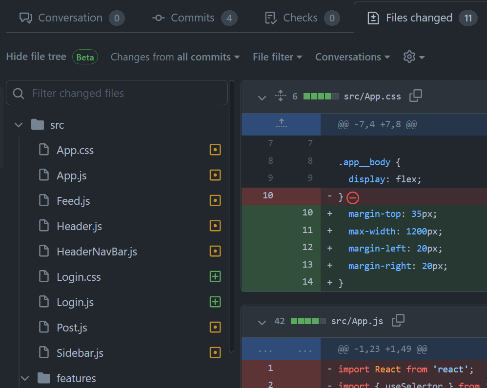 그냥 변경된 파일 뷰의 연속인데, PR에 포함된 파일의 변화량이 적으면 다행이지만,