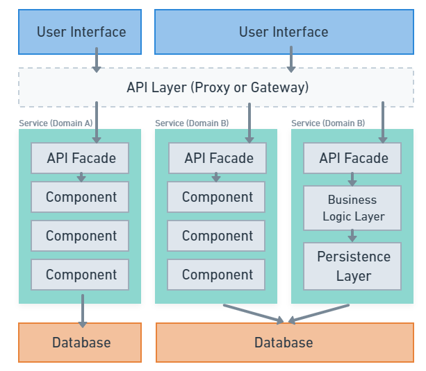 또한, 유저 인터페이스와 서비스 사이에 API 레이어로써 프록시나 게이트웨이를 둘 수도 있다.
